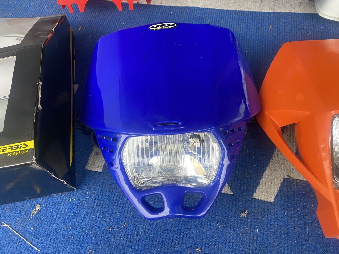 Mascherine anteriori nuove con faro per Enduro marca UFO – ACERBIS adattabili su moto Ktm Honda Yamaha Fantic motor Kawasaki Husqvarna ENDURO E MOTARD.